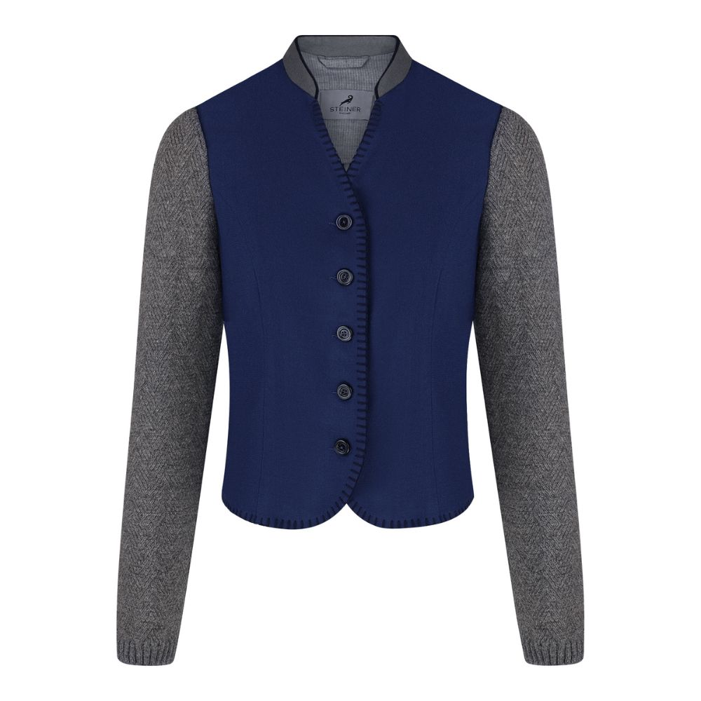 Summery light loden combined with a fine knit in herringbone pattern: this is our jacket Sandra from the Steiner1888 spring collection. The stretch loden and the knitted sleeves make it comfortable to wear. The mother-of-pearl buttons have been color-matched.
